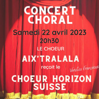Dans le cadre du festival de concerts organisé par Choral Events, nous aurons le plaisir de recevoir les Suisses du Choeur Horizon ! Nous chanterons avec eux samedi 22 avril à 20h30 à notre...