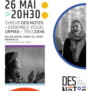 Notre premier concert de fin d’année approche et voici l’affiche ! Vendredi 26 mai à 20h30, nous chanterons à l’église Notre-Dame-du-Mont à Marseille, accompagnés de l’ensemble vocal URMAS, dirigé par Valérie Marque et du...