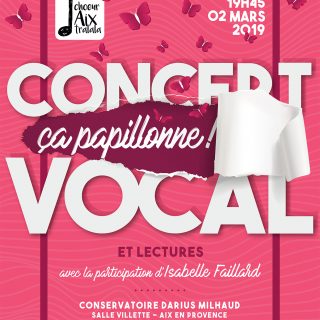 Méli-mélo de textes et de chants, « ça papillonne ! » sera le premier opus du spectacle 2019 du chœur Aix’Tralala. En association exceptionnelle avec la comédienne Isabelle Faillard, Aix’Tralala explore les méandres de la...